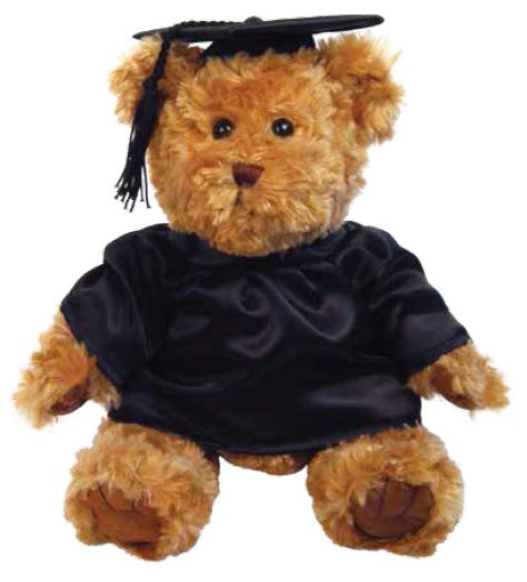 10" Traditional Bear with black graduation cap and gown imprinted with the Randolph Logo. A great gift for your graduating senior!!